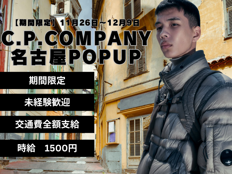仕事内容 【期間限定】 11月26日〜12月9日まで 【お仕事内容】 *接客 *レジ *棚の整頓 *品だし *梱包 *売り場メンテナンス *売場作りのサポ―ト *店内清掃 …etc ∽∽∽∽∽∽∽∽∽∽∽∽∽∽∽∽∽∽∽∽∽∽∽∽∽∽∽∽∽∽∽∽ C.P. カンパニー(C.P. COMPANY)は、イタリアのファッションブランド。 ミリタリーやワークウェアの機能性、素材、デザインを 組み合わせた独自のコレクションが人気。 ミリタリーウェアの持つ独自な機能性や素材に魅せられた 創業者のマッシモ・オスティは、ミリタリーウェアの アーカイブを収集し、そのディテールを再構築することで、 洋服のデザインをスタート。アーカイブの特有の 使い込んだ風合い、色褪せたような独特な カラーリングに着目しし3万点以上の アーカイブを集めて研究したと言われている。 ∽∽∽∽∽∽∽∽∽∽∽∽∽∽∽∽∽∽∽∽∽∽∽∽∽∽∽∽∽∽∽∽ 【短期派遣の就業条件】 以下のいずれかに該当する方のみ、 短期(または日雇)派遣での就業が可能です。 条件①:60歳以上の方 条件②:雇用保険の適用を受けない学生の方 条件③:生業収入(本業での年収)が500万円 以上あり、副業として就業する方 条件④:世帯年収が500万円以上で、 主たる生計者でない方