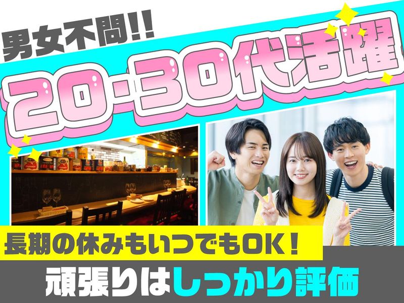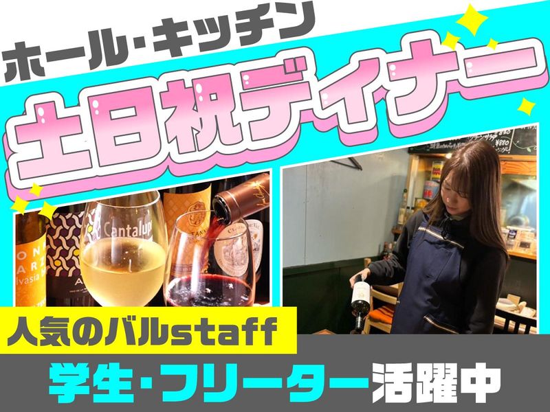 仕事内容 ⭐【土日祝ディナー】17:00~23:00 ⭐金欠の方!すぐ働けます♪ ⭐週2日~、1日4h~OK! ⭐服装・髪型・髪色・ネイル自由◎ ⭐絶品まかない無料♪ ⭐アルバイトも有給あり! ⭐らくらく応募!履歴書不要! ⭐正社員登用あり ⭐長期のお休みいつでもOK! ライフスタイルに合わせて スキマ時間を活かそう٩(。•ω•。⋈) チェーン店にはない魅力がココにあります!! ♡。・⋈・。✧。・♡。・⋈・。✧。・♡。・⋈・。✧。・ 人気ワインバルのホール・キッチン 味も雰囲気も最高なオシャレワインバル 「ホール」「キッチン」お好きな方をお任せ! 料理・接客が初めての方でも大丈夫♪ ▼ホール いろんなお酒を作ったり、お客様と楽しく会話したり♪ ▼キッチン お肉を焼いたり、パスタを作ったり…正直料理の腕上がります♪ 未経験・ブランクのある方も大歓迎★ 料理が好きな方や接客が好きな方活躍できます! わからないことは しっかり教えてもらえるので安心してくださいね◎