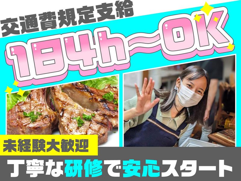 勤務時間詳細 ⏰【ディナー】 17:00~23:00(22:30L.O) ―――――――――――― ◆週2日、1日4h~OK! ◆Wワーク・フリーター歓迎!