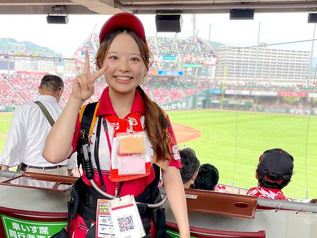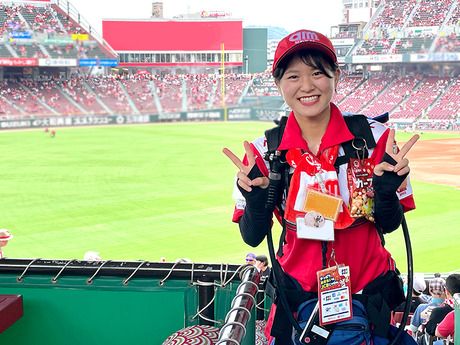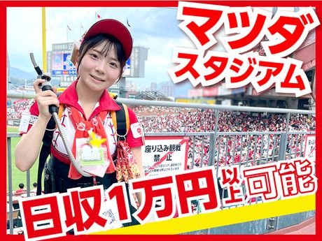 仕事内容 【ココで働くメリットがたくさん!】 *・―――――――――――――――――・* ◆スタジアムの熱気の中で働けるレアバイト! ◆気の合う仲間とスタジアムを盛り上げよう! ◆友達と応募OK!バイトデビューも大歓迎! ◆週1日~OK!学業や家庭との両立がしやすい◎ ◆授業後や土日に働く学生・フリーター活躍中! *・―――――――――――――――――・* 【球場内でのビールの売り子スタッフ】 活気あふれるマツダスタジアムで 試合中、スタンド内を回って お客様に笑顔とビールなどの飲み物を お届けするお仕事です。 1試合で平均100杯、 多い人では300杯を販売することも。 販売数に応じて歩合がつくため、 やる気次第で日収1万円以上も可能です! 声かけや回り方など、コツを掴めば、 どんどん売上もUPさせていけます◎ もちろん最初は、先輩スタッフが しっかり販売の仕方を教えていくので、 自分のペースで成長していってくださいね♪ 売り子の待機場所には、 飲み物も準備しているので、 暑い時期の熱中症対策も万全です◎ あなたの元気な声と笑顔で、 スタジアムを盛り上げてみませんか? - 【未経験大歓迎!初めてでも安心な理由とは...】 事前に研修があり、不安なことを 払拭してから現場に入れますよ◎ みんなで一緒にスタートするので、 気分はまるでオープニングスタッフ♪ 安心して働き始められる環境です! また、毎年未経験から始めるスタッフが 多いのでマニュアルも充実! 困ったことがあっても人数が多いので スグ確認することができます◎ - 【毎日が楽しい!仕事のやりがい3選!】 【1】 自然と“社会人スキル”がUP!  ̄ ̄ ̄ ̄ ̄ ̄ ̄ ̄ ̄ ̄ ̄ ̄ ̄ ̄ ̄ ̄ 業務を通してコミュニケーション力や 営業力、行動力等どこでも活かせる スキルが身に付く◎ 【2】 成長を実感出来る仕組みがたくさん!  ̄ ̄ ̄ ̄ ̄ ̄ ̄ ̄ ̄ ̄ ̄ ̄ ̄ ̄ ̄ ̄ 歩合制、売上上位10名だけが着れる 赤ユニフォームetc.. 自分の頑張りがしっかり評価される! 【3】工夫次第でファンGET!  ̄ ̄ ̄ ̄ ̄ ̄ ̄ ̄ ̄ ̄ ̄ ̄ ̄ ̄ ̄ ̄ 販売スタイルは人それぞれ! 常連さんやあなたを推してくれるお客さんが 増えるたびに、どんどん楽しさが増していきます! - 【働きやすさが自慢!シフト相談はお気軽に!】 日祝休み、土日祝休み、平日のみなど 希望の方はお気軽にご相談くださいね! 「今週はどうしても外せない予定が…」という場合は 事前に伝えてもらえれば可能な限り調整します◎ フォローし合える体制が整っているので安心です! - 【よくある質問!Q&Aコーナー!】 【Q1】野球に詳しくなくても大丈夫?  ̄ ̄ ̄ ̄ ̄ ̄ ̄ ̄ ̄ ̄ ̄ ̄ ̄ ̄ ̄ ̄ 野球が好きなスタッフも多いですが 「駅から近いから」「楽しそうだから」 なんて応募理由で、野球を知らない方も 大勢いるので安心してくださいね◎ 【Q2】背負う樽の重さは?  ̄ ̄ ̄ ̄ ̄ ̄ ̄ ̄ ̄ ̄ ̄ ̄ ̄ ̄ ̄ ̄ 樽は最大約15キロと10キロの2種類ありますが、 樽を体に密着させ、荷重をしっかり支える サーバーバックがあるので安心ですよ◎ 【Q3】マツダスタジアムで働く魅力って?  ̄ ̄ ̄ ̄ ̄ ̄ ̄ ̄ ̄ ̄ ̄ ̄ ̄ ̄ ̄ ̄ 何と言っても、普段の日常では 決して味わえない試合の熱気や興奮を 肌で感じながら働けるのが魅力の一つ! お客さんの”歓声”や”笑顔”に包まれた空間で、 『仲間と一緒にスタジアムを盛り上げていく。』 これが楽しくて仕方がないんです♪ -