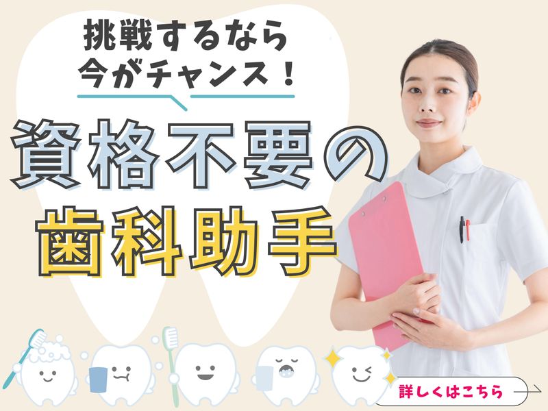 仕事内容 / 定着率バツグンの職場 経験不問!未経験からのスタートできます 【歯科治療のアシスタント業務】 \ ―――――――――― 【 仕 事 内 容 】 ―――――――――― 〇受付 〇診療補助 〇器具の準備 〇片付け・洗浄 〇患者様の呼入 などをお任せします。 \\ここがポイント// 1)未経験からのチャレンジ大歓迎  ̄ ̄ ̄ ̄ ̄ ̄ ̄ ̄ ̄ ̄ ̄ ̄ ̄ ̄ ̄ ̄ ̄ 患者さんに 明るく接することが出来ればOK! *先輩スタッフが丁寧に指導しますので 一つずつ覚えていけば大丈夫! 2) 定着率バツグンだから3年ぶりの募集  ̄ ̄ ̄ ̄ ̄ ̄ ̄ ̄ ̄ ̄ ̄ ̄ ̄ ̄ ̄ ̄ ̄ ̄ ̄ 明るく楽しい職場で 20代、30代が中心に活躍中! 充実待遇で長期安心して働ける環境です。 3) メリハリばっちり*完全週休2日制  ̄ ̄ ̄ ̄ ̄ ̄ ̄ ̄ ̄ ̄ ̄ ̄ ̄ ̄ ̄ ̄ ̄ ̄ ̄ 完全週休2日制! 1週間の働き方は 早番(2回)+遅番(2回)+フル(1回) お昼休憩はたっぷり1.5時間! 遅番の日は14:00~の勤務なので 自分の時間もしっかり確保出来ますよ。 4)昼食代の支給有り!  ̄ ̄ ̄ ̄ ̄ ̄ ̄ ̄ ̄ ̄ ̄ ̄ 嬉しい昼食代の支給有り! 美味しいご飯でお仕事も頑張れます** 5)駅チカで通勤もラクラク  ̄ ̄ ̄ ̄ ̄ ̄ ̄ ̄ ̄ ̄ ̄ ̄ ̄ ̄ 最寄り駅から徒歩5分! アクセス良好の立地です。 車通勤もOK* - 居心地の良い職場** 当院で地域医療を一緒に支えましょう! -