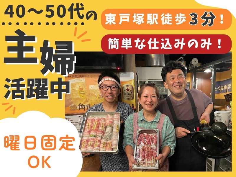 仕事内容 包丁が少しでも使える方大歓迎♪ 地元で人気のもつ焼き大衆酒場にて 仕込みスタッフ大募集✨ 8時~16時の間で勤務!! <具体的には…> ●もつや野菜の下処理 ●調味料やタレの計量 ●簡単な調理補助 ●食材の検品・保存・在庫管理 ●調理場の清掃や衛生管理 など _____________________________ \接客が苦手な方、 コツコツ作業派さんにピッタリ / ✅お客様対応ゼロ! 電話対応・レジ・ホールなし! ✅1日5時間〜OK!家事のスキマ時間に!! 10〜15時勤務など夕飯の支度も間に合う♪ ✅髪色・服装自由でストレスなし _____________________________ ⭐経験者・未経験者歓迎! 料理好きな方も大歓迎◎ 「黙々と野菜を切る」「タレを計る」など 家庭料理レベルの作業でOKです! ⭐少しでも興味がある方は、 お気軽にご連絡を! ☎090-5559-9151(採用担当) _____________________________ 【店内の雰囲気は…】 「人と人が交わる場に…」そんな思いで、 明るく元気なスタッフが働いています! 作業は忙しい時もありますが、 みんなで声を掛け合っている、 明るくメリハリのある職場です◎ 「人柄重視」の採用なので、 あなたらしくのびのび働けます♪ フランクな常連さんも多い ローカル大衆酒場で 仲間と賑やかに働いてみませんか?✨ _____________________________ 【働くスタッフの声✨】 Aさん(40代) ――――――――――― 子育てもひと段落して、 日中で働ける仕事を探していました。 「接客なし」でコツコツ作業が 中心だから安心でした。 子育てや家事のスキマ時間で 気楽に働けています◎ 賄いも楽しみのひとつで、 家計にも助かっています♪ Bさん(50代) ――――――――――― 家で簡単な料理を作る程度の スキルしかなかったので 初めは不安もありましたが、 同世代のスタッフも多く、 分からないことはすぐ聞ける環境です。 楽しい雰囲気の中で、 長く働けるのが嬉しいです◎