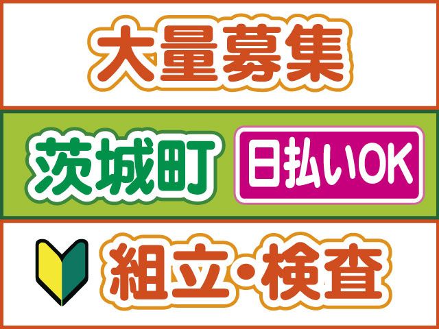 仕事内容 かんたん軽作業・未経験スタート多数活躍中 選べる勤務時間で家庭・プライベートと両立OK 自分のペースでスタートできます 「組立・検査スタッフのポイント」 〇10名の大量募集 〇未経験OK、資格不問 〇時給1190円スタート 〇土日祝休み 〇日勤または午後スタート選べます 〇仕出し弁当あり(400円) 〇作業着・作業靴貸与 〇20代30代40代女性活躍中 〇履歴書不要 〇日払いOK(規定内) 〇交通費支給(規定内) 〇「マイリク定着支援」導入企業 「組立・検査スタッフの詳細」 茨城町にある企業での AV機器や家電製品、車関連機器の 電気基盤の組立・検査 を お任せします 具体的には、 ・電気基板の目視検査 ・部品の組立 ・簡単なライン作業など シンプルな作業が多く、 未経験の方でも始めやすいお仕事です 小さな部品を扱う軽作業なので、 力仕事が苦手な方や、 細かい作業が好きな方にピッタリ 未経験から始めた方が多数活躍中 分からない事などあれば先輩スタッフが 教えてくれるので安心して働けます 事前に職場見学もできて安心 職場見学(30分~1時間程度)を実施しております。 「組立・検査スタッフの勤務について」 〇日勤・午後スタート、時間選べます 〇土日祝休みの週休2日制 〇長期連休あり 急な発熱・体調不良・冠婚葬祭など、 突発的なお休みに柔軟に対応しております。 【経験活かせます】 〇部品製造会社勤務経験 〇品質管理派遣社員 〇検査・検品パート・アルバイト 〇主夫(婦)さんパート・アルバイト ブランクある方もOKです! 製薬工場、食品工場での品質管理や解析などの 経験を活かして働けます! 電話でのご応募、ご質問も受付中 TEL0800-222-6888(フリーダイヤル) までお気軽にお電話ください。 求人情報はコチラ https://entori.jp/loftytsukuba コーディネーター・定着支援のWサポート体制導入 「マイリク定着支援」導入企業! アンケートで職場の様子を確認し、 コーディネーター・定着支援担当が連携してサポート。 はじめての派遣でも安心して働けるよう迅速かつ 丁寧にサポート対応いたします。