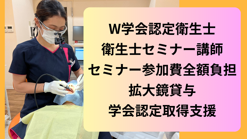 仕事内容: 【働きやすさと成長環境が両立】 * 有給消化率100% * 残業1日15分程度 * 勤務時間の調整OK(子育て中も安心) 【学びたい人を全力で応援】 * セミナー・学会費は全額医院負担 * 歯周治療中心の担当制でスキルが伸びる * 最新の歯周治療機器「ブルーラジカル」導入 【スタッフ想いの福利厚生】 * 年末に1万円相当の山形牛プレゼント * 髪色・ネイルOK(業務に支障ない範囲) * Google口コミ高評価の、地域に愛される医院です 【まずは見学だけでも歓迎です】 「雰囲気を見てから決めたい」という方も大歓迎。 お気軽にお問い合わせください!【歯科衛生士/担当制メインテナンス中心】 永田歯科医院は、歯周治療とメインテナンスを中心に、担当制で患者さんをじっくり診られる医院です。アシスト業務はほとんどなく、衛生士本来の業務に集中できます。 <主な業務> * 担当制でのメインテナンス * TBI、SC、SRP * 歯周治療(ブルーラジカル導入) * 治療計画の相談(TCと連携) <特徴> * 歯周治療のスキルを高めたい方に最適 * 学会・セミナー参加は医院が全額補助 * 患者さんとの信頼関係を大切にする診療スタイル