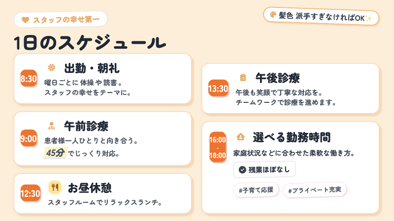 有休100%・残業ほぼなし!安心して長く働ける歯科医院です
