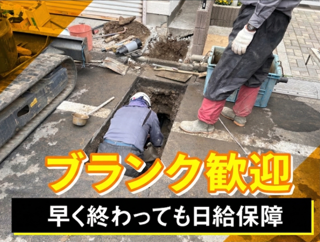 仕事内容 \ 未経験から学びたい方大歓迎 / 当社は平成17年設立。 東京都23区を中心に道路工事 下水道管・水道管引込み工事を 行っています。 長く働いているスタッフが多く、 20年近く勤務している社員も在籍。 落ち着いた雰囲気の職場です。 =================== お仕事詳細  ̄ ̄ ̄ ̄ ̄ ̄ ✅まずは簡単な作業からスタート! 道路のアスファルト・コンクリート工事や 上下水道交換工事の現場で、資材準備や 片付けなどできることから始めます。 先輩と一緒に現場に入れるので、 分からないこともスグに聞けますよ♪ 実業務は未経験でも、 運転や現場立ち会い作業、工事写真撮影、 道路清掃作業などできることはたくさん◎ まずはサポートから 少しずつ慣れていければOKです! 4~5名体制なので、未経験の方も安心。 50代~70代のスタッフも活躍中で、 ハローワーク経由で71歳の採用実績も あります! =================== ✨チームで行う安心の作業環境 機械での掘削作業の補助や、 水道管関連工事のサポートを行います。 シートパイルを扱う作業もありますが、 必ず複数名で対応します。 朝は越谷に集合し、現場へ向かいます。 直行直帰もOK!気軽にご相談ください◎ 図面作業はありません。 =================== ✨無理なく続けられる働き方 道路使用許可時間は9:00~18:00。 基本は8:00~17:00で残業はありません。 現場によっては 早く出発することもありますが、 早出出勤扱いとなります。 早く終わる日もあり、日給は保証します。 20歳で準中型免許取得支援実績もあり、 若い方のチャレンジも応援しています。