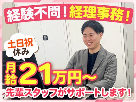 仕事内容 【未経験からはじめる経理事務!キャリアアップの可能です!】 「事務だけで終わりたくない」 「安定したスキルで、将来は責任ある立場を目指したい」 そんな方に向いている経理事務です。 経理の専門知識は入社後に基礎から習得可能。 未経験からスタートし、会社を数字で支える存在として成長できます。 <<お仕事内容(未経験でも安心のシンプル業務)>> 会社のお金の流れを正確に管理する、 経理業務を担当します。 ・請求書処理、支払処理 ・給与計算(専用システム使用) ・スタッフの勤怠管理(打刻チェック・確認) ・即払い(前払い)申請の対応 ・電話・来客の一次対応 ※判断が必要な業務やイレギュラー対応は、最初は先輩が対応します。 <<入社後の流れ>> ●1ヶ月目 書類整理やデータ入力などの簡単な業務からスタート。 経理用語も少しずつ覚えればOK! ●2ヶ月目 先輩と一緒に支払い処理などを担当。 分からないことはすぐに質問できる環境です◎ <キャリアアップについて> 将来的には 経理業務の取りまとめ 後輩指導 経理部の責任者ポジション など、管理・マネジメント側へステップアップ可能。 「長く働きながら、役割と収入を上げていきたい方」を歓迎します! <<働く環境>> ・中途入社の社員が多く、 20~30代が活躍中です! ・営業さんは各拠点2~4名と少数精鋭で、 コミュニケーションも活発◎ ・ギスギスした雰囲気とは無縁の、 助け合いが根付いた職場です♪