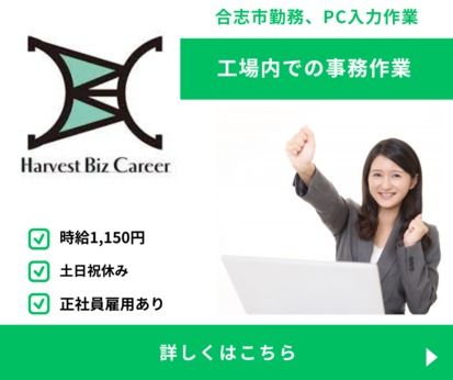 選考プロセス 応募 ↓ 電話面談/web面談の予約ができるメールが届く (早く案内できるときなどは電話致します!) ↓ 派遣登録のヒアリングをしながら案件を紹介 ↓ 職場見学 ↓ 内定 ↓ 個別契約書など必要書類の手続き後、就業へ 【問合せ先について】 問合せ先:096-237-6027 タイミングが良ければ1週間後に就業も可能です。 1ヶ月以内に働ける職場も多くありますので、すぐ就業したい方は是非ご応募ください! 応募方法 【登録地】 熊本営業所:熊本県菊池郡菊陽町津久礼2205-2 テラストン203 電話番号:096-237-6027 メールアドレス:info@harvestbiz.jp アクセス:三木里駅 徒歩で5分