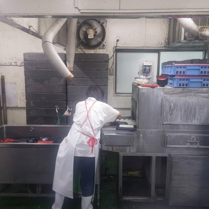 深夜の盛り付けスタッフ