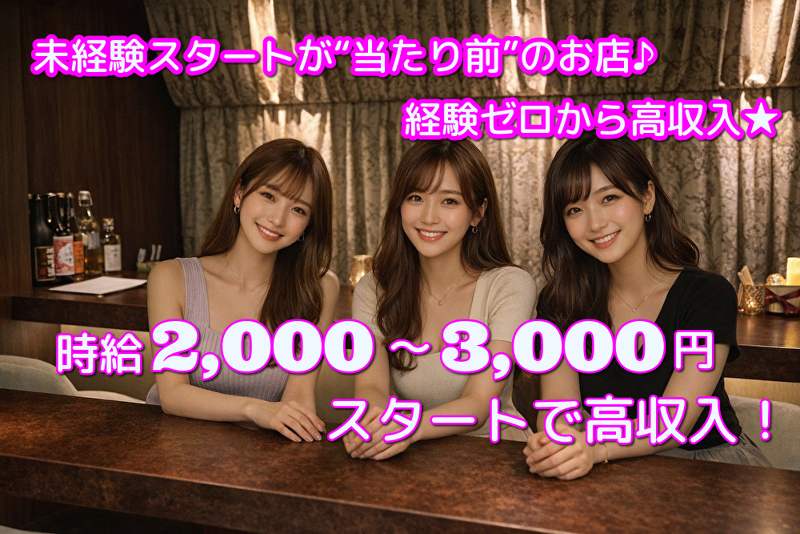 アピールポイント: ⭐ 落ち着いた大人空間でゆったり働ける♪ 店内は木目と柔らかな照明でまとめられた、 “ガールズバー”というより“おしゃれなカウンターバー”のような雰囲気。 BGMが流れる穏やかな空間で、無理せず自然体で働けます。 お客様も地元の常連さんが多く、上品で優しい方ばかり◎ ⭐ 未経験スタートが8割以上! 在籍しているスタッフのほとんどがナイトワーク未経験からスタート。 難しいマニュアルや堅苦しいルールもなく、 先輩がゆっくり丁寧に教えてくれる環境です。 「夜のお仕事ってちょっと不安…」という方でも、 すぐに馴染める温かさがあります。 ⭐ 人間関係のストレスなし! 営業やノルマが無いお店だから派閥・上下関係は一切なし。 みんながフラットで、ギスギス感ゼロの職場です。 お互いを思いやりながら、笑顔で助け合う“和やかチーム”が自慢♪ ⭐ 私服で気軽に勤務OK! ワンピースやカジュアルな私服でもOK! 「仕事帰りにそのまま」もできる気軽さが魅力です。 自分らしく働けるので気分に合わせておしゃれを楽しめます。 ⭐ “楽しく長く続けられる”お店を目指しています。 無理な営業や飲酒は一切なし。 自分のペースでゆっくり成長できる環境です。 「癒し系」「聞き上手」「おっとりタイプ」も大歓迎! 落ち着いたお店で、自然体のまま長く働けます。