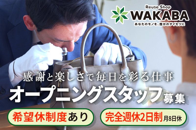 【雇用形態】 正社員 【契約期間】 正社員のため、無期雇用 【その他】 清須エリアで「買取店わかば」の店舗スタッフを募集しています。 バッグ・時計・貴金属・金券などの買取業務を担当し、未経験から査定スキルや接客スキルを身につけられます。 社会人経験が浅い方や第二新卒の方をはじめ、パート・アルバイトから正社員へのキャリアチェンジを考えておられる方も喜んでお迎えします。 未経験からでも入社から1~2ヶ月で独り立ちが可能。リピーターのお客様と接する中で、ご自身の提案力・傾聴力を活かすこともできます。 週休2日制で残業もほとんどなく、年末年始休暇・リフレッシュ休暇でオフも充実します。仕事とプライベートを両立したい方も納得の環境。 ハローワークや求人サイトで「未経験OK」「接客」「査定・買取」「キャリアアップ」「正社員」などのワードで検索している方にもぴったりです。