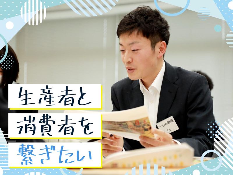 仕事内容 ■□━━<<給与優遇あり>>━━□■ 経験・能力などを考慮の上決定します。 ■□━━━━━━━━━━━━━━□■ ★商品企画 ☆バイヤー ★事業企画 ☆広報 ★人事・総務 など、多彩なキャリアパスから”やりたい”を叶える! あなたの望む仕事で成長しませんか? - ◆コープこうべの未来を担う総合職募集 - 阪神エリアのくらしに密着した事業を展開する、コープこうべ。 日本で最も長い歴史を持つ生協であり、 組合員数や供給(売上)高でも、日本有数の規模を誇ります。 そんな私たちの仕事というと、 ●地域を回り商品を届ける「宅配」 ●日々の買い物で利用する「店舗」 を思い浮かべる方が多いと思います。 しかし実際はそれだけではありません。 商品企画やバイヤー、事業企画、広報、人事・総務など 現場所属を支える部署がコープこうべにはたくさんあります。 また「福祉」「共済」「生産」「文化」など、展開する事業も多彩です。 今回お迎えする方は、これらコープこうべのあらゆる仕事に挑戦できる可能性があります。 具体的には、 ●各事業部でのマネジメント ●物流関連の管理や企画 ●経理をはじめとしたバックオフィス部門 ●品質保証といった製造関連の専門職 など。 「今までの学びや経験を、地域のために役立てたい」 「興味関心のある分野で経験を積み、プロフェッショナルを目指したい」 そんな方からのご応募を、私たちはお待ちしています。 - ◆先輩たちが叶えた、”やりたいこと” - 総合職として中途入所した先輩の経歴は様々。 しかし前職で見つけた自分なりの”やりたいこと”を、 コープこうべで叶えているところは共通しています。 例えば、種や苗を扱う仕事をしていたある先輩は、 「日本の農業をより良くしたい」という想いから、 消費者=組合員様と関わる仕事も経験するためにコープこうべを選びました。 またある先輩の前職は、菓子メーカーの営業。 前職での経験を活かしてバイヤーになるという目標を掲げ、 現在は店舗で必要な知識とスキルを身につけています。 コープこうべに転職してきてから、 新たなキャリアを見つけた先輩もいます。 現在SDGs推進部で電力事業の企画・運営を担っている職員は、 大学時代に工学部でエネルギーを専攻していたことや、 前職の銀行勤務で会計に関する基礎を身につけていたことを買われ、 20代後半で事業の責任者に抜擢されました。 - ◆職員の成長を後押しする、充実の研修制度 - コープこうべでは、職員が望むキャリアを叶えられるよう 豊富な学びの機会を用意しています。 例えば新たに店舗で働く職員がスムーズかつ早期に活躍できるよう、 OJTと集合研修を組み合わせた数ヶ月のカリキュラムがあります。 年次や役職に応じた研修も随時実施しており、 ビジネススキルやマネジメント等も学べる内容となっています。 また商品や生協の仕組みなどを学べる研修も多数あり、 興味がある研修を自由に選んで参加することができます。 研修は各事業のマネジャークラスも担当。 そこで繋がりを築くことができれば、自分の望むキャリアをぐっと引き寄せることができます。 ============== 【具体的なキャリアの流れは…】 まずは「宅配事業」「店舗事業」いずれかで組合員様と接する業務につき、 生協の事業や組織への理解を深める研修期間とします。 研修期間は人それぞれで、早ければ2ヶ月で終了した人もいます。 ○宅配(セールス・配送) 1.5t車で担当エリアの組合員様にご注文頂いた商品を配達しながら、 くらしに密着した様々な商品をご案内します。 生協の宅配サービスがなぜ地域に根差しているのか、どのように運営がなされているのかを学びます。 ○店舗(販売・売り場企画) コープこうべが運営する各店舗にて、組合員様への商品アドバイスや 売場づくり、商品発注、レイアウトやディスプレイなど、 担当する売場に応じた幅広い仕事を行います。 その中で、生協の店舗運営の現状を理解いただきます。 ▼ 入所半年~1年後を目安に、 リーダー職(チーフや副店長など)もしくはエキスパート職へとステップUPします。 エキスパート職には ・バイヤー ・販促企画 ・商品企画 ・物流管理 ・品質保証 ・事業企画 ・総務 ・経理 ・人事 といった多種多様な職種があります。 あなたの知識やスキルを活かせる仕事を優先的にお任せしていきます。 ▼ ≪入所5年目以降≫ 適性に応じて、管理職など各部署の中核を担っていただきます。 ジョブローテーションにより複数の部署で管理職を経験するゼネラリスト型のキャリアと、 専門性を活かして一つの部署で長く活躍するスペシャリスト型のキャリアがあります。 他にも... ○適性や意向に応じてキャリアチェンジもあり ○年に一回自身の仕事への適性や将来への希望を伝える「定期自己申告」の仕組みあり * 「一人は万人のために、万人は一人のために」 この言葉はコープこうべ誕生以来受け継がれている、愛と協同のスローガンです。 私たちの想いに共感