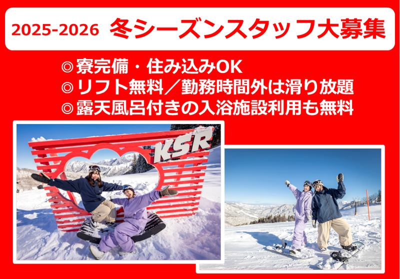 ◎未経験OK◎寮完備◎リフト無料◎入浴施設利用も無料!