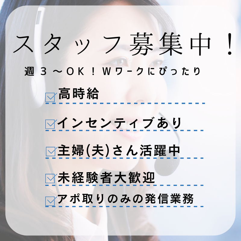 仕事内容 ❁┈┈ 土日やすみ┈┈❁ コールセンターで 働きませんか ┈┈┈┈┈ ❁ ❁ ❁┈┈┈┈┈ 未経験のかたでも安心して始められるお仕事です! ・フリーター ・主婦(夫)さん ・Wワーク・副業OK ・ブランクOK ・50代、60代、70代活躍中 などなど 「家から通いやすい」 それだけでも立派な理由です! ┎┈┈┈┈┈┈┈┒ 履歴書不要 ┖┈┈┈┈┈┈┈┚ ⭐土日休めます⭐ ☜CHECK 【10:00~19:00】の間で1日3h~勤務していただけます ※基本土日休み (社内カレンダーに準ずる、日曜日固定休み) <シフト例> 10:00~13:00 10:00~16:00 14:00~19:00 ※13:00~14:00はお昼休憩時間となります。 ※一時間ごとに小休憩があります。 ご希望のシフトは面接時に教えてください♪ もちろんフルタイム勤務も大歓迎! ・週3~勤務 ・平日のみ ・Wワーク ・長期勤務 ・フルタイム ・原則残業なし 入社日の調整◎ ┄▸仕事内容◂┄ 出張買取のアポイントをとる発信業務をお任せします! (1)電話をかける 一般のご自宅へ自動でお電話がかかります。かんたんでミスもない! ↓ (2)ご案内 お客様がご不用になった品物を聞いて伺う日を決める! 例「ご自宅にもう使わなくなった〇〇はありませんでしょうか。 ありましたらぜひ見せていただきたいです!〇月〇日に弊社の査定員が伺ってもよろしいでしょうか。」 断られたら… 「もし何か出てきた時はぜひご連絡ください!お電話ありがとうございました。」 とすぐに終わります ↓ (3)パソコン入力 お話した内容を一言入力して終了! かんたんな操作ができれば大丈夫 お客様は60代女性がメイン フランクに会話ができればOK 台本があるので難しくありません! ■━━━━━━━━━━━━□ ┃ お 仕 事 は こ れ だ け ┃ □━━━━━━━━━━━━■ 事前研修アリ! いきなりお電話はさせませんので、ご安心ください あなたのご応募お待ちしてます♪