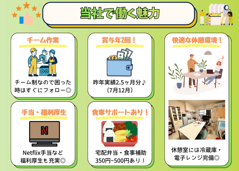 未経験・若手スタッフ活躍中✅夜勤なし⏰賞与年2回✨食事補助有
