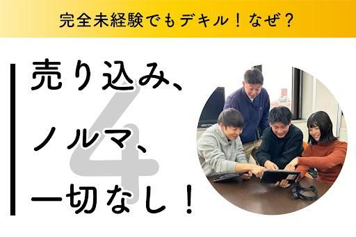 求めている人材 ✨営業・販売などの 経験を活かしたい方歓迎 ✨未経験から挑戦したい方も大歓迎! ✨第二新卒・社会人デビューもOK! ✨転職者多数!安心してお越しください ▼こんな方におすすめです □新しいことに挑戦したい方 □営業にチャレンジしたい方 □安定して長く働きたい方 □人と話すことが好きな方 □頑張りがしっかり返ってくる環境で働きたい方 \9割が営業未経験で入社/ ――――――――――――― ・介護職員 ・ジュエリーの販売スタッフ ・工場での製造スタッフ ・トラック運転手 …など、前職は多種多様。 全くの異業種からの転職、元フリーターなど…様々なスタッフが活躍中! 「面接で先輩がみんな良い人ばかりで入社を決めた」という声も多いです。 \安心の教育・サポート体制!/ ――――――――――――――― <入社後の教育・研修> ▼基礎研修(1ヶ月) 商材や補助金制度など、 住宅・省エネ知識を座学で学習。 ▼先輩同行 経験豊富な先輩について、お客さまと 話す内容や仕事の流れなどを習得。 ▼独り立ち チームで行動します。 「一人だけは不安…」という方も安心◎ その他、営業経験をブラッシュアップする 実践ロープレあり!万全のサポート体制◎