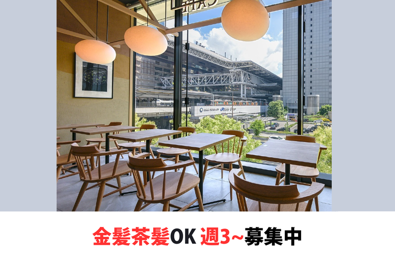 大阪駅直通!抜け感ある和カフェ。金髪茶髪等OK。週3~募集中