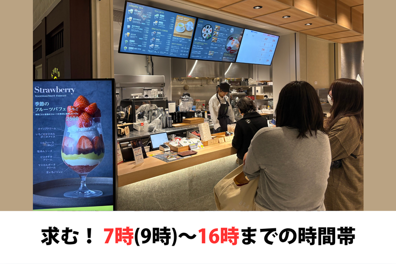 求めている人材 ◎CAFE、飲食業界経験者大歓迎! ◎しっかりと研修を行いますので、経験が浅い方もご安心下さい。 ◎オープンして間もないのでキレイ! ・接客が好きな方大歓迎! ・チームワークを大切に出来る方歓迎! ・安定企業で働きたい方大歓迎!