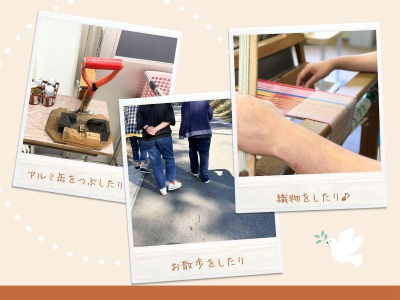仕事内容 \\アピールポイント// ✅賞与・昇給有り ✅未経験・無資格OK ✅専門知識や経験も一切不要! ✅ブランクがある方も大歓迎 ✅週3日~OK!平日のみもOK! ✅幅広い年代のスタッフが活躍中 ✅服装自由 ======= ⭐仕事内容⭐ ======= 知的障がいのある利用者さんが過ごす施設で 活動のサポートをお願いします。 難しいことはなく、 体をのびのびと動かしたり、 お散歩に行ったり、 アルミ缶の回収つぶし作業や織物、 パッチワークなど 利用者さんと一緒に過ごしながら 活動のサポートをお願いします。 利用者さんの生活を支える大切なお仕事なので、 責任はありますが、 ・「ありがとう」と直接言ってもらる ・小さな成長を一緒に喜べる など、人の役に立っている実感を しっかり感じられます✨ 家事・育児の経験を、そのまま活かせます♪ ============ ⭐1日のスケジュール例⭐ ============ 9:30~ 出勤・活動の準備 10:00~ 活動のサポート お散歩や織物など♪ 12:00~ 利用者さんの食事のサポート 13:00~ 利用者さんの洗濯物の返却など 14:00~ 活動 or 入浴のサポート 15:30 退勤 \こんな方におすすめ✨/ ・人と話すことが好きな方 ・誰かの役に立つ仕事がしたい方 ・未経験から福祉の仕事に挑戦してみたい方 利用者さんと一緒に過ごす時間が多く、 身近に「やりがい」を感じられるお仕事です。 \ステップ広場ガルについて/ 生活の基盤となる棟で、 くつろぎの空間であるリビングを兼ね備え、 家庭生活に近い環境で、利用者の方が本人主体で 生活を作っていけるように支援をしております。
