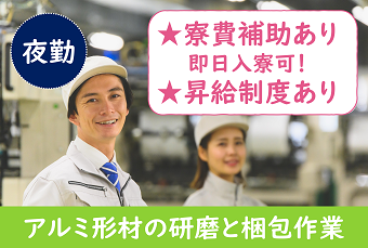 寮完全完備!!夜勤専属勤務!月収30万以上可!さらに昇給制度あり!【アルミ製品梱包作業】女性・シニアと幅広い年代の方が活躍中!