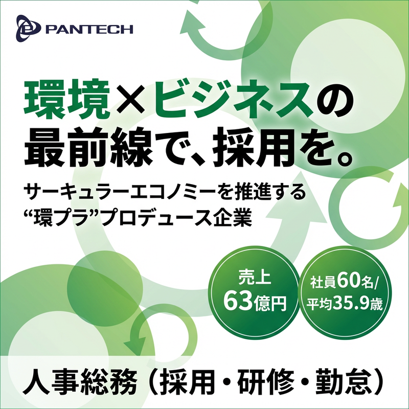 求めている人材 ■ 自社採用または人材会社での経験(1年以上) ■ 普通自動車免許(AT限定可) こんな方を歓迎します! ・採用や教育を通じて会社づくりに関わりたい方 ・自ら考え、行動できる方 ・チームワークを大切にできる方 ・環境・社会貢献性の高い仕事にやりがいを感じる方