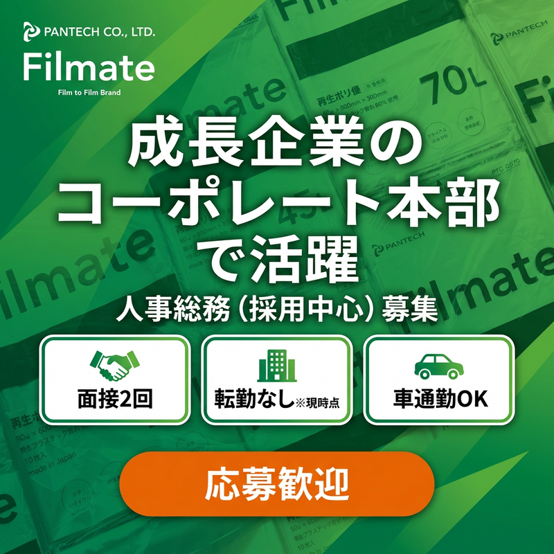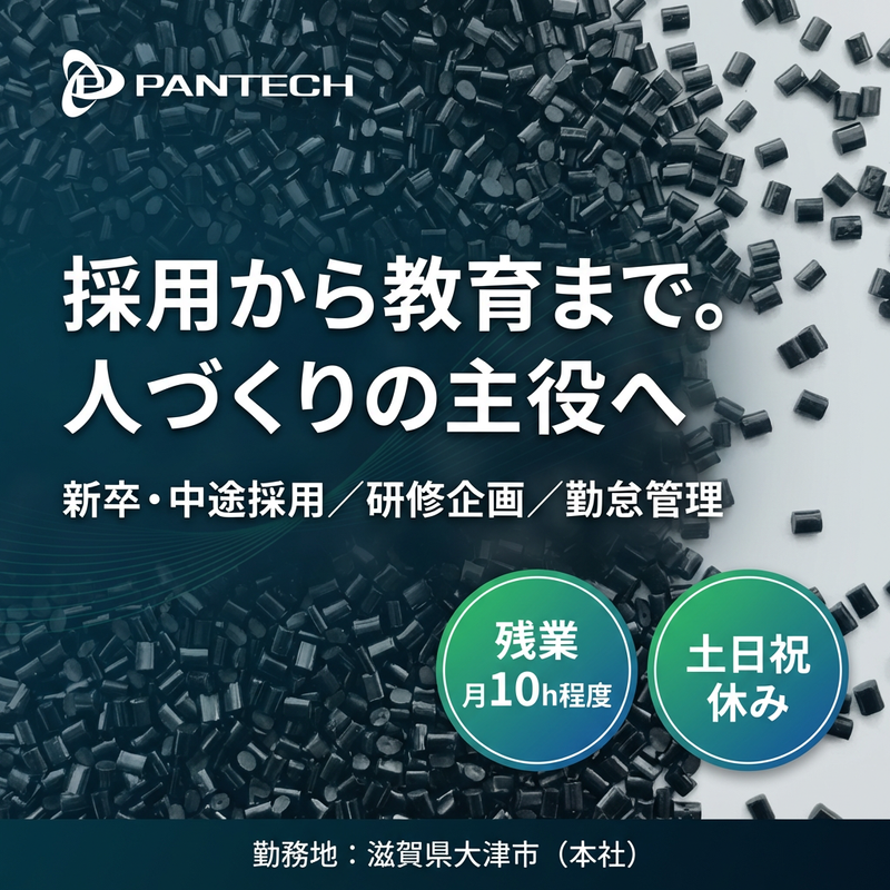 仕事内容 \採用・教育を通じて、環境ビジネスの成長を支える/ □ 新卒・中途採用の企画・運営 □ 社内研修や教育制度の企画・実施 □ 勤怠管理や人事総務業務全般 人と組織の成長を支える【人事総務】として、環境配慮型ビジネスを展開する当社の“これから”を一緒につくっていただきます。 ▼簡単な募集内容▼ 【雇用形態】 正社員 【給与】 年収:410万円~495万円 【勤務時間】 8:45~17:45 【勤務地】 滋賀県大津市瀬田4丁目5番8号(本社) 【募集要件】 採用業務のご経験(1年以上)/普通自動車免許(AT限定可) \お仕事内容/ 人事総務業務を中心に、以下の業務をお任せします。 ※ご経験・スキルに応じて、できるところからスタートします。 ■ 採用業務(新卒・中途) ◇ 求人作成、ナビサイト運営 ◇ 会社説明会の企画・実施 ◇ 大学・エージェントとの連携 ◇ 面接対応、内定者フォロー(内定式・入社式含む) ■ 勤怠管理業務 ◇ 勤怠システム設定 ◇ 月次締め、残業時間集計・資料作成 ■ 社内教育・研修の企画運営 ◇ 内定者研修、新入社員研修 ◇ 階層別研修、専門研修の企画・運営 ■ その他総務業務 ◇ 部内ローテーションにより、総務・労務業務も経験可能 《入社後の流れ》 まずはこれまでのご経験を活かせる業務からスタート。徐々に業務の幅を広げながら、「採用 × 教育 × 組織づくり」を担うコアメンバーとして成長していただきます。 ★この求人のアピールポイント★ ◪ 年間休日127日!土日祝休みでオフも充実 ◪ 残業月10時間程度!ワークライフバランス◎ ◪ 賞与年2回(昨年実績6.2か月分)+決算賞与あり ◪ SDGs・サーキュラーエコノミーに直結する事業 ◪ 採用・教育を重視する企業で人事として成長できる し 転勤なし(大津・栗東のみ) 【どんな会社?】 私たちは、プラスチックを「ゴミ」ではなく「資源」として再生する国内トップクラスのプラスチックリサイクル企業です。 廃プラスチックの回収から再資源化、製品開発・販売までを一貫して行い、大手有名企業と共に、循環型社会の実現を目指しています。 環境ビジネスという成長分野で、「人」を大切にしながら、長期的に安定成長を続けている会社です。