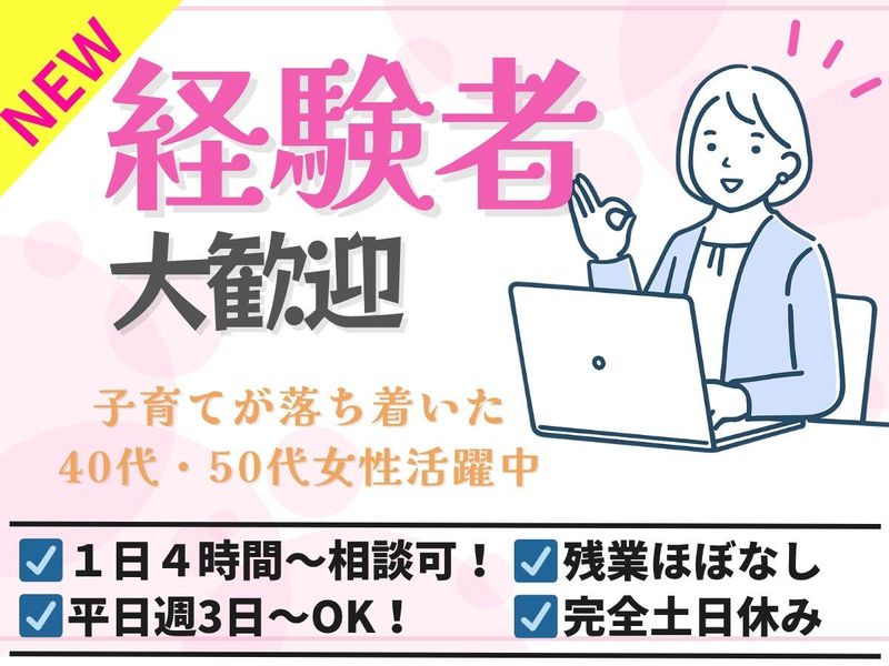 仕事内容 40代・50代の女性スタッフ活躍中 本社での営業事務スタッフ大募集! 受発注業務、 見積作成、 メール・電話応対、 簡単な梱包発送作業 などのお仕事です。 ⭐週3日、1日4時間~OK! ◌◍┈┈┈┈┈┈┈┈┈┈┈┈┈┈┈⿻*.· ◆丁寧にお教えするので ブランク明けの方でもご安心ください