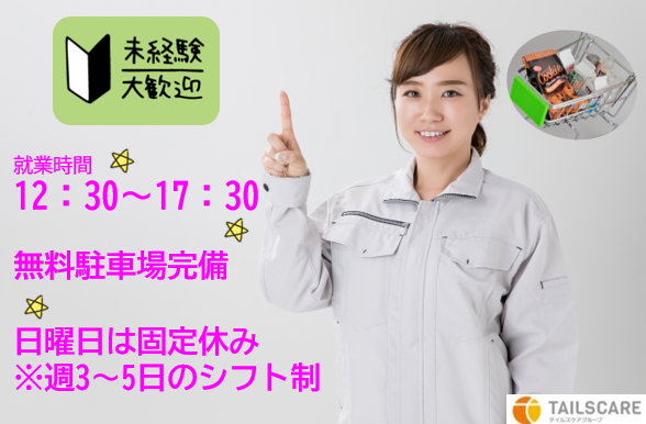 シフト制 勤務時間詳細 【勤務時間】12:30~17:30 ※時間相談可能 【勤務日】月~土の週3~5日のシフト制 ※大型連休は出勤