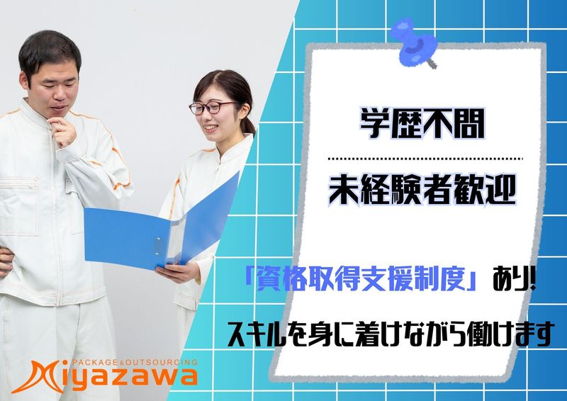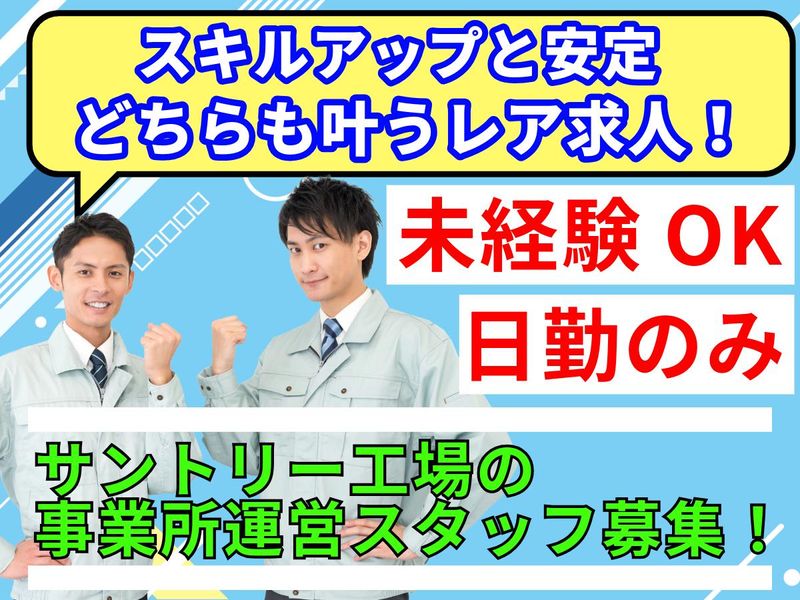仕事内容 【新着求人】正社員募集 (株)ミヤザワの事務所・現場管理スタッフ✨ ――――――――――――――― ✅工場製造等の経験者優遇 ✅夜勤なし!日勤のみ◎ ✨住宅手当は家賃等を50%負担! ✨年間休日120日以上! ✨退職金制度など福利厚生充実◎ ――――――――――――――― 【お仕事の詳細】 事業所の運営に係る諸業務 (安全・品質・5S・人財管理・収支管理・勤怠管理 など) サントリーの工場で製造請負をしている弊社の 運営のお仕事を一緒にしませんか!? サントリー製品を製造するうえでの 「品質向上活動」 「防虫活動」 「5S活動」 「安全活動」 「改善活動」 など様々な活動がございます。 また事業所運営として 「収支管理」 「採用活動」 「勤怠管理」 「社内スタッフとの連携」 「他事業所との情報共有」 など様々な経験を積むことができます。 もちろん未経験で問題ありません。 一定期間管理職層と共に業務を行っていただ お仕事を習得していただきます わからないこと・困ったことがあっても 周りの先輩に聞くことができる環境です。 ゆっくりと確実にお仕事を覚えていきましょう。 ――――――――――――――― 【未経験からスキルアップを!】 当社の管理スタッフは 一つの歯車として働く仕事ではありません。 「品質」「安全」「人材」「コスト」… これらすべてに関わるからこそ、 大手メーカーの工場がどう動いているのか その”全体像”を学ぶことができます。 幅広い知識と経験は、 あなたをどこにいっても通用する 「市場価値の高い人材」へと 成長させてくれるはずです。 ―――――――――――――――