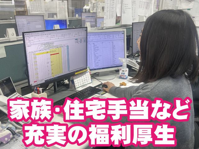 【保険制度】 雇用保険、労災保険、健康保険、厚生年金 待遇 ・昇給、賞与あり ・社会保険完備 ・賞与年2回+期末一時金(6月、12月、4月) ・交通費全額支給 ・車・バイク・自転車通勤OK ・住宅手当 ・家族手当 ・ジョブ手当 ・カフェテリアプランあり ・社員食堂 ・資格取得支援 ・研修制度あり ・退職金制度(確定拠出年金) ・従業員持株会制度 ・夏季休暇 ・慶弔休暇 ・産休育休制度 ・介護休暇制度