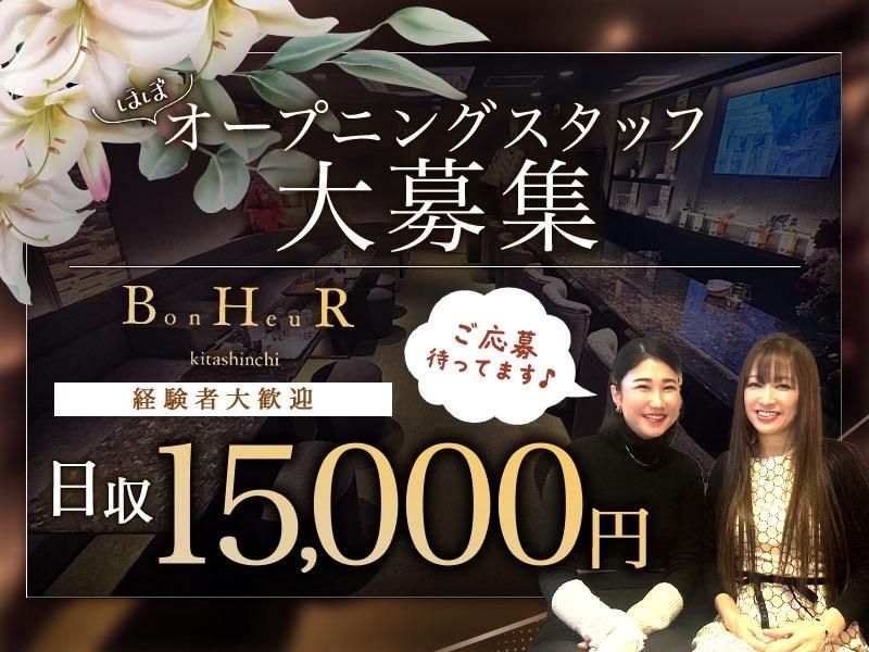 仕事内容 ノルマ・同伴・連絡先の交換は一切強要なし♪ ルールや派閥もないので 未経験でも気軽に働けるお店です♪ JR「北新地駅」から徒歩3分♪ Bonheur ~ボヌール~にて フロアスタッフを募集します! 【具体的なお仕事内容】 ◆カンタンなドリンクづくり ◆お客様と楽しくおしゃべり など 【入店したら】 まずはドリンクづくりから教えます♪ テーブルには先輩と一緒に着くので 一人きりにさせることは一切ないです♪ 困ったらいつでも近くにいる先輩や ママに頼ってくださいね◎ - 【当店で働くポイント】 ①未経験でも時給3000円~! 未経験からでも高時給スタート♪ 経験のある方には時給4000円~も可能! 手当も充実していますので、 時給以上にガッツリ稼げるお仕事です♪ ②ノルマ・細かいルールなど一切なし! 当店は、スタッフ皆に伸び伸び働いてもらえるよう ノルマや厳しいルール、派閥などは一切なし! 同伴やアフターは絶対に強要しません。 連絡先も基本的にしなくて大丈夫! ③働きやすい環境! 週1回の出勤でもOK! 働きたい時に、稼ぎたい分だけ 働くことができるお仕事です♪ - 【こんな方が活躍しています!】 ■夜職が未経験の方 ■ガッツリ稼ぎたい方 ■掛け持ちで効率的に稼ぎたい方 学校終わりに働く大学生さんや、 掛け持ちで働く会社員の方が活躍しています! 夜職未経験の方も不安なく働けるように お店でサポートしていきますので 働き方の相談や希望は遠慮なく言ってくださいね♪ 【20代スタッフインタビュー】 欲しいハイブランドのバッグが欲しくて お小遣い稼ぎでスタートしました。 夜職の経験は全くなかったのですが、 ママやスタッフが優しいので、 困ったらいつでも頼れるところが助かっています。 高時給で各種手当も充実しているので、 頑張り次第でどんどん稼げています! 人の話を聞くことが好きな方には 特にピッタリのお仕事だと思います! - 【お店について】 完全人柄採用なので、スタッフ皆の 性格の良さには自信があります。 新人さん想いの女の子ばかりなので、 困ったら助け合える、 暖かい雰囲気で働いて頂けますよ!