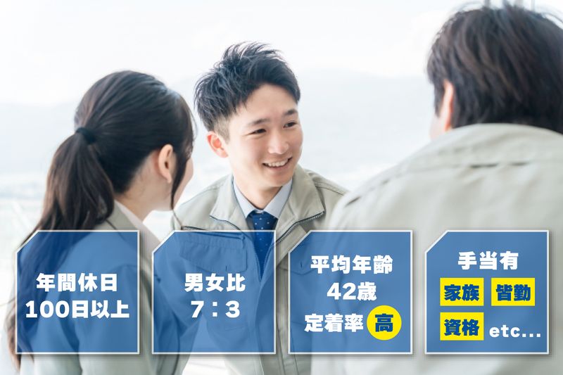 社会貢献度の高いお仕事です。働き方改革にも積極的に取り組んでいます!!