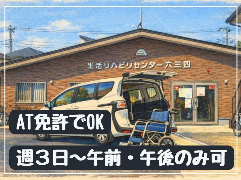 仕事内容 社会福祉法人 六三四が運営する障がい者デイサービスにて 利用者様の送迎を担当するドライバーさんを募集します。 「長時間は難しいけど働きたい」 「運転の仕事を続けたい」 「定年後も社会とつながっていたい」 そんな方にぴったりのお仕事です。 送迎には職員が添乗しますので、 運転に集中できる環境です。 <仕事内容> 障がい者通所デイサービスの送迎ドライバー業務です。 ・利用者様のご自宅⇔施設間の送迎 ・ワンボックスカー(AT車)を使用 ・ルートはほぼ固定 ・職員が添乗するため運転に専念可能 ・乗降時の簡単なサポートあり(重労働なし) 福祉業界未経験の方も多数活躍中。 丁寧な同乗研修からスタートします。 ■この仕事のポイント ✅ 普通免許(AT限定)でOK ✅ 短時間勤務(朝・夕のみ) ✅ 午前だけ/午後だけ勤務OK ✅ 空き時間は一度帰宅できます ✅ 力仕事ほぼなし ✅ ルート固定で覚えやすい ✅ 60代以上スタッフも活躍中 ✅ 副業・WワークOK ✅ 扶養内勤務OK