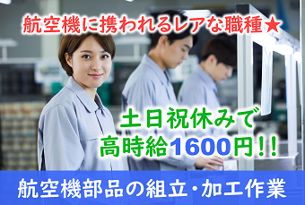 【高時給1600円!月収30万以上も◎】大手企業の系列会社なので超安定◎◆航空機に携われる数少ないお仕事です!◆◇製造業での経験やスキルが活かせる職場◇