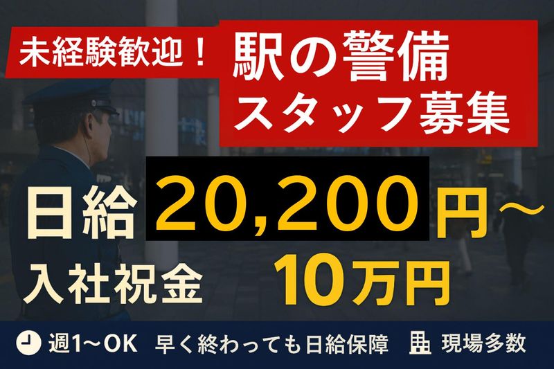 仕事内容 ◆◇◆ 未経験歓迎!駅の警備スタッフ募集 ◆◇◆ ◎ 定着率抜群!長く安心して働ける職場 ◎ 入社祝い金10万円支給 ◎ 週1日~OK/フルタイムも歓迎 ◎ 早上がりでも日給保証あり 【仕事内容】 鉄道関連工事に伴う警備業務を担当していただきます。 ・駅構内での誘導・案内 ・交通誘導警備(歩行者や車両の安全確保) ・イベント警備の仕事もあり! ★ 未経験の方も安心! • 座学研修で基本からしっかり学べる • 現場の動画や写真を使った分かりやすい説明 • 4日間の研修で不安ゼロスタート! 9割以上のスタッフが未経験からスタート! サポート体制が整っているので安心して働けます◎ ★エムサスに警備員が集まっています!その理由10選!★ ➀人を守り笑顔を創る警備業に誇りを!5年前から警備員の呼び方に敬意を込めて「警備士」に! ②働き易さ安定した稼ぎ易さが自慢!3年の定着率が業界異例の80%!(業界平均62%) ③警備士への想い日本一!警備を家族に誇れる仕事に!キレイな制服を着て欲しい!汚れたらスグに新品に交換!海外旅行や和牛が景品の大忘年会、BBQ、ボーリング大会など様々なイベント実施! ④研修センター設置&法定研修は以前の4日間のまま!どんな現場も自信を持てる手厚い教育環境! ⑤「困った時のエムサス!」警備力が高いエムサスはクライアントの信頼が厚く仕事が豊富! ⑥鉄道、ガス、高速道路など警備力が高いから他社にはない仕事が豊富!仕事の安定は心の安心! ⑦「毎日がちょっとした旅行気分♪」様々な現場があり、希望も応相談!観光・グルメ好きも楽しめます! ⑧エムサスは安全オタク集団!警備の仕事の面白さはもちろん、奥深さ、醍醐味を感じられます! ⑨「な~んか、居心地が良いんだよな~」みんな仲良く人想いだから、気が付いたら10年なんてことも ⑩志高く、警備業を誇れる仕事にし、警備士の皆さんと100年続く会社を創る! 【ここがポイント】 ◆ 入社祝い金10万円支給 新しいスタートを応援! ◆ 早上がりでも「日給保証」あり 現場が早く終了しても給与は全額支給! ◆ シフト自由!週1日~OK ・週1日~ WワークOK ・週4日・週5日で安定収入も可能! あなたの生活スタイルに合わせて働けます◎ ◆ 季節ごとの装備品支給 ・夏は空調服 ・冬は防寒着 働きやすい環境をしっかり整えています! ◆ 資格取得の費用は「全額会社負担」 キャリアアップを目指したい方も歓迎! 【幅広い世代が活躍中!】 現在、20代~60代まで様々なスタッフが活躍中! 未経験からスタートした若手も、経験豊富なベテランも、お互いに支え合いながら働いています。 年齢関係なく馴染みやすい職場なので、どの世代でも安心して働けます。 【スタッフの声】 ◆ 30代男性 最初は未経験で不安もありましたが、研修が丁寧で安心しました。 季節ごとの装備品があるおかげで、暑さや寒さもそこまで気にならず快適に働けています! ◆ 40代女性 週3日で無理なく働いています。シフトの融通が利くので、家庭と両立しながら続けられるのが魅力ですね。 ◆ 50代男性 セカンドキャリアとしてスタートしましたが、職場の雰囲気がよく、若いスタッフとも楽しく働けています。