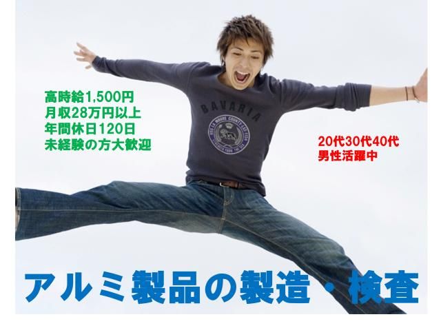 アルミ製パネルの加工・検査 稼げる2交替勤務! 週替わりなので プライベートも充実できます♪ ≪ポイント≫ □未経験者歓迎! □月収28万4000円可能! □年間休日120日! □20代~40代の男性スタッフ活躍中! 難しい作業ありません! 安心してご応募ください♪