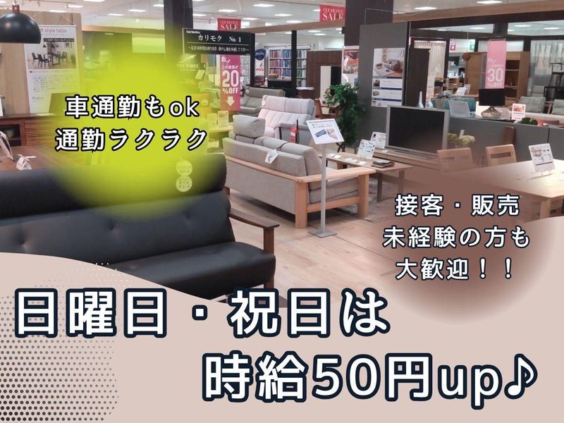 仕事内容 \\ 創業110年を超える老舗 × スタイリッシュな家具店でのお仕事 // ✨ 服装自由で自分らしいおしゃれを楽しめる! ✨社員割引あり♪自社商品をお得にゲット! ✨シフト融通◎週3日~/1日5時間~OK ✨ 車通勤も可能!通勤ストレスなし お仕事内容 ✅お客様対応(商品説明、質問対応、提案など) ✅プライスタグ作成や伝票処理 ✅POPの作成・メンテナンス ✅レジ業務 ✅データ管理(納期表・在庫表の更新) ✅電話対応 ✅店外イベントへの参加 など ※業務ではフォーマットに沿ったPC操作もあります。 未経験から始められる接客・販売のお仕事! 先輩スタッフがしっかりサポート◎ はじめは一つひとつ業務を覚えていけば大丈夫です。 慣れるまでは焦らず、じっくり取り組んでいきましょう。 勤続10年以上のベテランスタッフも在籍! 和やかな雰囲気で、気軽に質問できる環境が整っています♪ ⭐実際に働いている方にインタビューしてみました⭐ Aさん(主婦・勤務歴2年) ―― 家具店で働こうと思ったきっかけは? 以前からインテリアや家具に興味があったのがきっかけです。子どもが小学生になって時間ができたので「ちょっと働いてみようかな」と思い応募しました。 ―― 実際に働いてみてどうですか? シフトが柔軟で、週3日・5時間から働けるので家庭とのバランスがとりやすいです。学校行事や急な用事にも快く対応してもらえるのでとても助かっています。 ―― 働く環境はどうですか? 女性スタッフが多く、30代から50代まで幅広い年齢層の方が活躍しています。お弁当持参OKで、休憩スペースもあるので、ほっと一息つきながらお昼を楽しめるのもいいですね。 ―― 服装自由とのことですが、気を使いますか? 全然気を使わなくて大丈夫ですよ!普段の自分らしい服装で働けるのが嬉しいです。 ―― お仕事で大変なことは? 最初は商品名や品番を覚えるのが少し大変でした。でも、先輩方が丁寧に教えてくれるので、焦らず自分のペースで覚えられました。 ―― 嬉しいことは? やっぱりお客様に「あなたのおかげで良い買い物ができた」と言われたときは嬉しいですね。それと、社員割引でお気に入りの家具を購入できたのも最高でした! ―― これから応募を考えている方へメッセージをお願いします 家庭を大事にしながら、無理なく働きたい主婦の方にぴったりだと思います。女性が多い職場なので相談しやすく、初めてでも安心してスタートできますよ✨