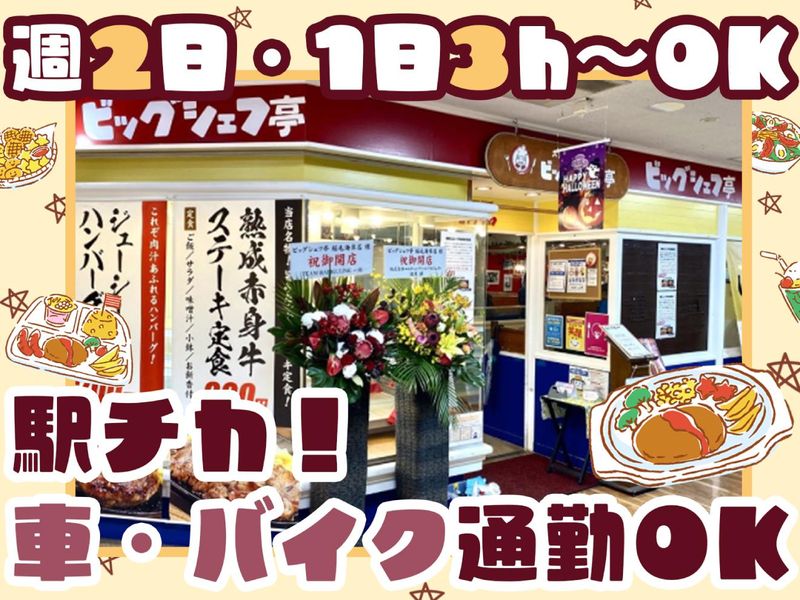 仕事内容 \ 駅チカ×自由シフト×まかない250円 / 放課後や家事のスキマ時間にちょうどいい♪ 気軽に始められるレストランバイト✨ 土日祝は時給100円UP✨✨✨ 時給1,250円でしっかり稼げちゃう! ✅駅チカの商業施設内で通いやすい! ✅週2日・1日3時間〜OK♪ ✅テスト休み・家庭都合OKの柔軟シフト ✅高校生・大学生のバイトデビュー多数 ✅まかない250円/髪色・服装自由 ✅友達応募OK/自転車・バイク通勤可 ✅稲毛海岸・検見川浜・幕張本郷・稲毛・美浜区エリアから通勤中スタッフ多数! ▍お店について 「稲毛海岸駅」徒歩6分、イオンマリンピア内にある「ビッグシェフ亭」は、本格ステーキやハンバーグを気軽に楽しめる洋食レストラン。 店内はいつも明るく、スタッフ同士の声かけも多め✨ 困ったときはすぐに誰かが助けてくれるから、自然と笑顔が増えるような雰囲気です。 ▍仕事内容 ・お客様のご案内 ・注文の受付 ・お料理の提供 ・テーブルの片付け ・レジ対応 など まずは「お皿を運ぶ」など、できることからでOK! 接客が初めてでも、先輩が横でサポートするので安心です♪ 飲食店・居酒屋・小売店での勤務経験がある方は、即戦力として活躍できます! カフェ・ファストフード・スーパー・アパレル・事務など、他業種からのチャレンジも大歓迎◎ ▍働き方いろいろ!無理なく続けられる ✧・…学生さんにおすすめの働き方 ・放課後や土日だけのお仕事もOK 学校終わりにそのままシフトイン→帰りにショッピングも♪ ・シフト自由♪ テスト期間はシフト少なめ&長期休みはしっかり稼げる ・友達と一緒に応募も歓迎 学校もバイトもどっちも大事にできる、と好評です✨ ✧・…主婦(夫)さんにおすすめの働き方 ・午前中だけ・昼間だけの勤務OK ・お子さんの体調不良など、急なお休みも柔軟に対応◎ ・家事・育児との両立もスムーズ ・久しぶりにお仕事復帰した方も活躍中 ✧・…フリーターさんにおすすめの働き方 ・週5日フルタイムも、WワークもOK✨ ・人間関係のよさが自慢。長く続ける人が多い職場です♪ ・土日祝は時給UPでしっかり稼げる ・まかないは250円でボリューム満点◎ ・居酒屋や飲食店での経験がある方歓迎♪ 「飲食は初めてだったけど、思ってたよりずっとラクに楽しく働ける!」 そんな声が多い職場です♪ あなたのペースで、無理なく続けられるバイトをはじめませんか?