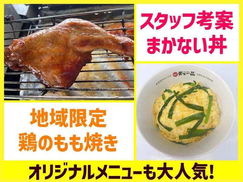 仕事内容 <週1日~OK!短時間でもOK◎> 未経験・初バイト・初パートも大歓迎!! 昨年リニューアルオープンした 地元で愛されるほんわか天一(てんいち) ー *週1日~OK◎ 平日のみ・土日のみ等もOK! *深夜は時給1500円~!! *22時以降も勤務できる方、 平日昼に勤務できる方、大歓迎! *まかない無料!! 天一のラーメンがタダで食べられる◎ *オリジナルメニュー考案など スタッフの意見を大事にしてくれる職場 *セルフレジ・セルフ水で負担も少ない◎ *とにかくアットホームな温かい雰囲気 初バイト・初パートにもピッタリ◎ ー ==================== 仕事内容 ==================== <ホール業務> お客さまのご案内やオーダー、 料理の配膳や片付けをお願いします。 最初は、メニューを覚えることや、 笑顔での「いらっしゃいませ」から 始めていきます♪ セルフレジ・セルフ水スタイルなので ホールの負担も少ないです◎ <未経験大歓迎!> 接客が初めての方も、 包丁を握ったことなくてもOK! アルバイトが初めての方も大歓迎! 慣れるまでオーナーや先輩スタッフが 隣で丁寧にサポート! 安心してスタートできますよ◎ ==================== 九条店はこんなお店 ==================== *2024年2月にリニューアルオープンした 気さくで優しいオーナーが営むFC店。 *地元の常連さんでにぎわうお店。 お一人様からファミリーまで、 ご近所の方もたくさん来られます◎ *駐車場有の2階建ての店舗。 1階はカウンター、 2階は広々としたテーブル席。 *とにかくアットホームな地域密着型店舗で ここの天一は接客もいいし安定の美味しさ と口コミでも評判の人気店です◎ *一部の店舗でしか味わえない 幻のご当地メニュー 「鶏のもも焼き」も大人気! *アルバイトスタッフが考案した オリジナルメニュー「まかない丼」も 近々デビュー予定! *スタッフのアイデアもどんどん取り入れて 皆が楽しみながらお店作りをしています。 「こうしたい」「やってみたい」など 思ったことは何でも言ってみてOK! *学生さん・主婦さん・フリーターさん等 15名のスタッフが活躍中! スタッフの人柄も自慢の職場◎ 温かい雰囲気で皆長く続いています♪