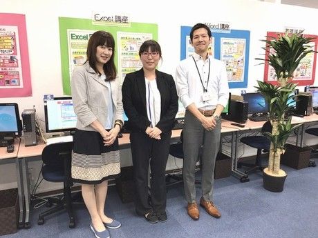 仕事内容 PC教室のインストラクター・運営サポート業務! 授業は主に映像教材を使用しますので、先生方には受講生の疑問点を解消し、 理解度を深めるお手伝いをしていただきます。 まずは日常会話を楽しむことからスタート! PCスキルが身についたら授業内容のサポートをお任せします。 8割以上が未経験スタート PCスキルアップ研修・インストラクター研修有! 安心してスタートできる環境◎ ※入社後の研修はオンラインで行います 当社の想い 未経験の方や会社員の方、下は小学生から上は90歳と幅広い年代にも、 PCスキルを手軽に学べる場所と確実に身につけられるプログラムをご用意しています。 「初心者の方でも安心して、必ずできるようになる」教室運営スタイルです。 私たちは、パソコンスキルを活かして充実した日々を送れるようサポートしています。 先輩インタビュー 「お客様より直接いただく『ありがとう!』のお言葉が嬉しいんです!」 「チームワークも大切にした教室運営で、サポート体制もあるので安心して進められます」 「未経験からスタートしましたが自分のペースで成長も感じられる環境です」 「教室でのOJTや研修制度も充実で、学べる環境も整っています」 「資格取得制度も充実しています」