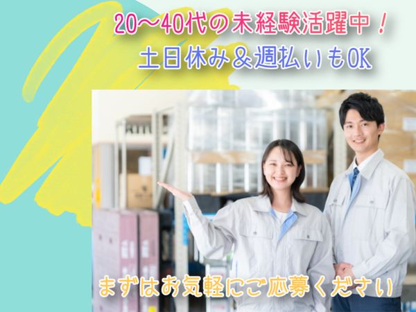 仕事内容 \応募理由は「家が近かったから」でもOK!/ *・。 お仕事のポイント 。・* ◆特別な経験なし!派遣デビュー応援〇 ◆地元の優良企業&長期間安定して働ける! ◆高給与で稼ぎたい方にもピッタリです! 『 百聞は一見に如かず 』 思っているよりもカンタンな作業です★ 仕事内容を読んで想像がついたらOK! ➽ちょっとでも経験があれば即戦力採用!  ̄ ̄ ̄ ̄ ̄ ̄ ̄ ̄ ̄ ̄ 【 仕事内容 】 ナットの簡単な加工作業をお願いします。 <具体的には…> ・ナットのネジ切りなどの加工作業 ・機械に部品をセット→簡単操作でナットにねじ切り加工→取り出して検品 ※極端な重量物はありません。ナットの箱最大15kg程度ですのでご安心ください。 ※作業は油を使用します。(手袋・エプロン貸与します)  ̄ ̄ ̄ ̄ ̄ ̄ ̄ ̄ ̄ ̄ ̄ ̄ ̄ 【* おすすめPOINT *】 ■モクモク・かんたん作業! ■20~40代の男女活躍中♪ ■年間休日120日!!! ■残業無しでサクッと定時退社☆  ̄ ̄ ̄ ̄ ̄ ̄ ̄ ̄ ̄ ̄ ̄ ̄ ̄ ̄ ̄ ̄ ̄ 【* スタッフさんコメント *】 「簡単な作業なので未経験からでも問題なかったです」 「土日休みで自分の時間もしっかり確保できます♪」 「研修があり安心でした」 【 充実の福利厚生! 】  ̄ ̄ ̄ ̄ ̄ ̄ ̄ ̄ ̄ ̄ ̄ ̄ ̄ ◆永年勤続表彰制度 勤続年数による手当があります。 例)勤続年数10年:3万円の手当と記念品 勤続年数20年:5万円の手当と記念品、エクシブ招待 腰を据えて長く働きたい方にとって、大変魅力的な制度です! 頑張りにしっかりリターンを返します。 安定したキャリアを築いて、一緒に成長しましょう! その他にも、家族手当や仮払い(週払い)制度など 働きやすい環境を整えてお待ちしております◎