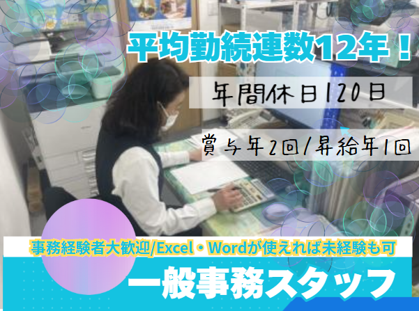 求めている人材 学歴・年齢不問 ★PC操作可能な方 (Word・Excelなどの基本的なスキルある方歓迎) ★事務経験のある方歓迎! ★未経験の方もOK(入社後にしっかりお教えします) <こんな経験あれば活かせます> ・一般事務 ・経理事務 ・営業事務 ・PC業務 ・オフィス勤務 ・受付 ・書類作成などなど 会社を支える縁の下の力持ちとして サポートしてくれる方大歓迎◎