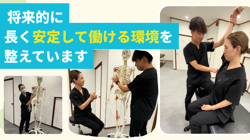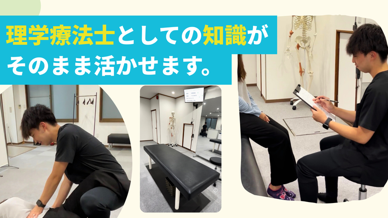 仕事内容 「病院勤務だけが、理学療法士の働き方じゃない。」 理学療法士の専門知識は、慢性疼痛の専門院でこそ輝きます。 完全予約制だから残業ほぼゼロ。 メリハリをもって、しっかり休んでしっかり働ける職場です。 ______________ 仕事内容 カラダ理学ラボは「痛みの改善」を専門とする神経整体院です。理学療法士として既定の治療プ ランに沿い、慢性疼痛に悩む患者様お一人おひとりに最適な施術を提供します。完全予約制のた め施術に集中できる環境が整っています。 ● 神経系ストレッチ・コンディショニング施術 ● 受付・会計・次回予約の対応 ● 施術前後の準備および院内環境整備 ● 電話・LINEによる予約受付・問い合わせ対応 ______________ 私たちの社風 ─ メリハリを大切にする職場✨ 「仕事中は全力で、休むときは完全に休む。」それが私たちのスタイルです。 完全予約制・定休日固定・残業ほぼなし。この環境は、スタッフが「オンとオフをはっきり切り替えられる」ように設計されています。施術中は患者様に100%集中し、退勤後は自分の時間を思いきり楽しんでほしい。そんな想いでこの職場をつくっています。 メリハリきっちりで働けるあなた、ぜひ一緒に働きましょう。 ◆施術中 患者様に全集中 妥協しない施術を ◆退勤後 完全に仕事を忘れて 自分の時間を満喫 ◆ 学びも充実 研修費は全額会社負担 勤務中に成長できる ______________ Q「整体院で理学療法士の資格が活かせるの?」 → もちろんです ! カラダ理学ラボは「一般的な整体院」ではありません。 神経系へのアプローチを軸とした慢性疼痛専門の治療院です。 理学療法士としての解剖学・運動学・神経学の知識がそのまま活きる環境で、既定の治療プランをもとに患者様一人ひとりに最適な施術を提供します。 ______________ 病院との違い、正直に伝えます! 休日出勤・緊急呼び出し→ 【一般的な病院】多い 【カラダ理学ラボ】なし(完全予約制) 研修・勉強会の費用 → 【一般的な病院】 自費が多い【カラダ理学ラボ】 全額会社負担 症例のバリエーション→ 【一般的な病院】幅広い【カラダ理学ラボ】慢性疼痛に特化 結果・手応えの感じやすさ → 【一般的な病院】難しいことも【カラダ理学ラボ】特化技術で結果出やすい プライベートの充実→ 【一般的な病院】犠牲になりがち 【カラダ理学ラボ】しっかり確保できる ______________ 先輩スタッフの声 ─ 転職してどうだった? Aさん(29歳・理学療法士歴5年) 【転職前の悩み】 病院では土日も研修で、自費で数万円。緊急呼び出しもあって体力的にきつかった。 【転職後の変化】 休日が本当に自分の時間になった。研修も全額会社負担で、学びが多い。日々お客様からありがとうを直接いただける。 Bさん(35歳・理学療法士歴8年) 【転職前の悩み】 患者の回転が早くて、自分の施術が効いているのか実感しにくかった。 【転職後の変化】 慢性疼痛に特化しているから、継続して通う患者様の変化を実感できる。やりがいが全然違う。 ______________ こんな方におすすめです✨ ✓ 病院の休日出勤・緊急呼び出しに疲れた ✓ 研修費を自費で払い続けることに限界を感じている ✓ 患者様の結果が出ず、モヤモヤしている ✓ オンとオフをしっかり切り替えて働きたい ✓ ストレッチ・動作改善など専門性を広げたい ✓ 会社負担で学び続けられる環境に身を置きたい ✓ 将来的に長く安定して働ける会社を探している ✓ キャリアをリスタートしたい