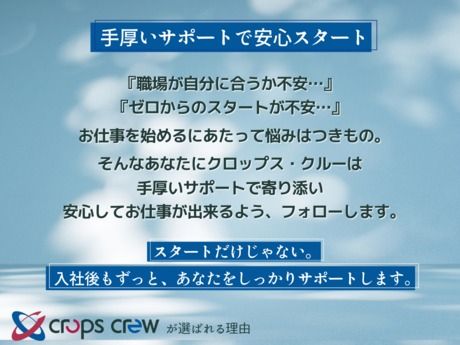 職場環境 【職場の雰囲気】 協調性がある お客様との対話は少ない 長く働ける 力仕事が多い 決められた時間できっちり 知識、経験不要