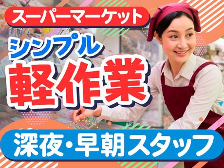 仕事内容 この求人のポイント  ̄ ̄ ̄ ̄ ̄ ̄ ̄ ̄ ̄ 【うれしい高時給】日収1万3875円も可、稼げる夜勤 【カンタン軽作業】未経験率90%超、老若男女活躍中 【選べる給与規定】嬉しい!日払いや週払いにも対応 【マイペース勤務】週3~4日勤務でプライベート充実 作業内容について  ̄ ̄ ̄ ̄ ̄ ̄ ̄ ̄ ̄ 24時間営業のスーパーマーケットで簡単な軽作業! 原則、接客はありません。コツコツ黙々ワークです♪ 【具体的には】 <商品の補充と陳列> 夜の時間帯に商品が続々と入荷されます。台車のまま その商品を売り場まで運び、陳列・補充していくのが 基本的な作業です。 <売り場の整理> お客さまが商品を取りやすいように配置を工夫したり 値札を見やすい位置に変えたりする作業です。 <賞味期限の管理と値引き> 賞味期限や消費期限を確認し、期限が近い商品には 値引きシールを貼って食品ロスの削減に貢献します。 <商品検品> 入荷した商品にキズや汚れがないかをチェックしたり 数が合っているかを確認します。 <その他> 夜間の時間帯なので、頻度として多くないですが 商品の場所を尋ねられた際は笑顔でご案内するなどの 接客対応が発生することもあります。このほか 共用施設の清掃をお願いする場合もあります。 <扱う商品> スナック、カップ麺、酒飲料などの加工食品をはじめ お弁当やお惣菜、牛乳、ヨーグルトなどの様々な商品 を取り扱います。 軽作業デビュー歓迎  ̄ ̄ ̄ ̄ ̄ ̄ ̄ ̄ ̄ 業務内容はシンプルだからスグに慣れるはず♪ と言っても、多少は覚えることもあります。 雰囲気の良い環境づくりに力を入れているので 在籍スタッフによる丁寧なサポートのほかにも 現場担当によるフォローもあるので安心です!