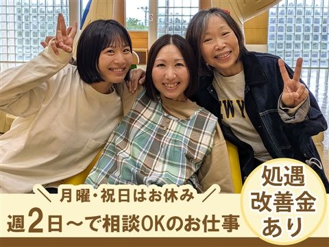 勤務時間 8:30~17:15、9:00~15:45、10:30~17:15 休憩45分 ※火~日曜日の中で週2日~相談可