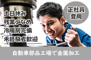 自動車部品工場で金属加工のお仕事≪未経験者応援!≫イチから丁寧に教育します! ジモト安定企業で働く◎規則正しいリズムで生活したい方におススメ!