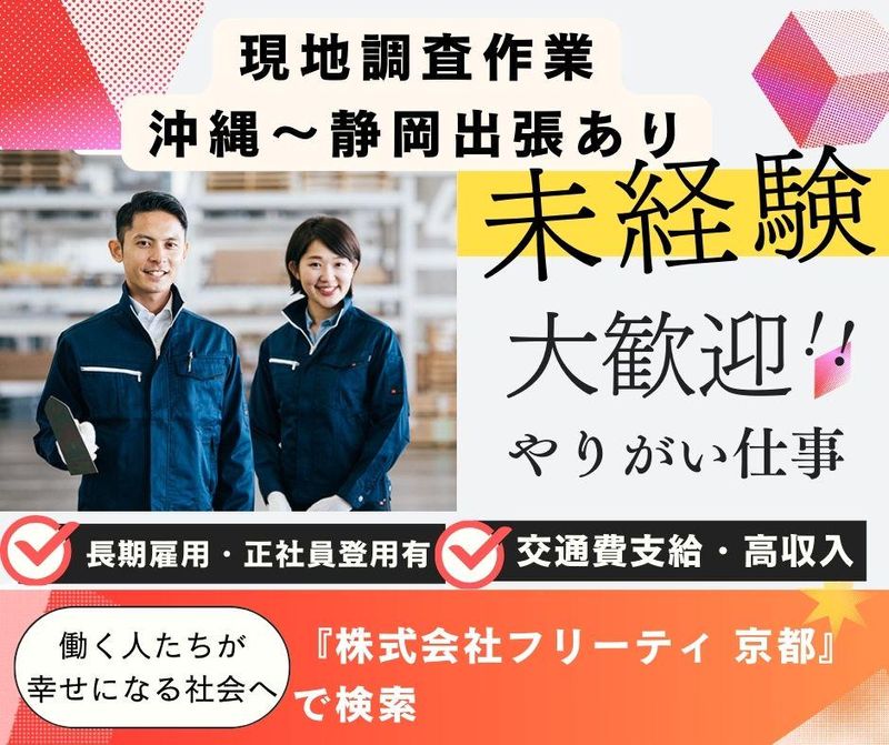 【保険制度】 雇用保険、労災保険、健康保険、厚生年金 待遇・福利厚生 【福利厚生】 【福利厚生】 ◆交通費規定支給 ◆社会保険完備 ◆髪色・髪型自由 ◆制服貸与 ◆副業・WワークOK※業務に支障がない範囲内 ⭐FReety派遣のメリットは…?⭐ ・派遣でも社会保険完備と手厚い待遇 ・派遣先企業様と求職者様を専任担当者が入社前から入社後もずっとサポート! ・未経験でもできる案件多数ご用意!