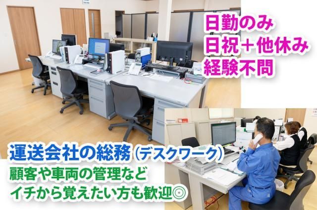 坂東市 総務事務 PCの基本スキルがあればOK 日勤のみ/日祝+他休み 30代40代が活躍中◎ 運送会社で働くことが初めて、トラックに詳しくないという方も基本的なPCスキルがあればOKです! お任せするのは取引のある顧客対応や、車両の管理、社員の勤怠管理など。 デスクワークを中心とした、電話やメールでのやりとりや書類の作成をお願いします◎ □資格不問・経験不問・経験者は給与優遇 □日祝+他休み/長期休暇有/プライベートと両立可 □褒賞金年2回・決算賞与・健康診断など福利厚生◎ □30代40代が活躍するポジション \当社の魅力/ 鉄骨から床・壁材まで、幅広い建築資材の運送をにない成長してきました。大手メーカーとの取引がメインなので安定して働ける基盤が整っております!
