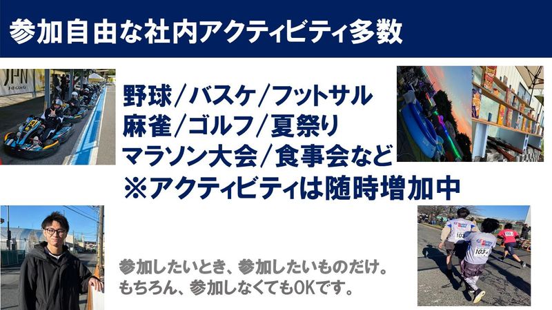 選考プロセス まずは、お気軽にご連絡ください! お電話(048-969-4872)or WEBからの応募 【選考の流れ】 【STEP1:応募】 ※職場見学可能! 仕事内容のご説明や、社内のご案内をします。 給与や休日のこと、何でも質問してください! ↓ 【STEP2:面接(1回)】 「ここで働きたい!」と思っていただけたら、面接に進みます。 あなたのこれまでや、これからについてお聞かせください。 ↓ 【STEP3:内定】 一緒に働ける日を楽しみにしています!